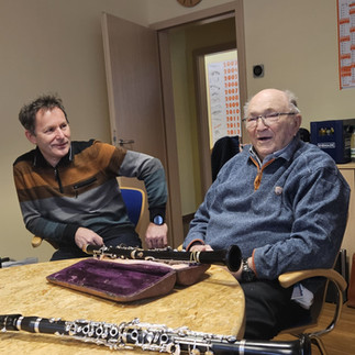 Mit vielen Anekdoten, Fachwissen sowie äußert nützlichen Hinweisen vom Profi aus über 90 Jahren Lebenserfahrung bildeten sich die Klarinette- und Saxophospielenden des BTU sowie der Ten2Teenies am Samstagmorgen in einem kleinen Workshop zu Fragen über Blätter, Blattherstellung und Blattpflege weiter. Praktisch erprobt werden die nun noch besser funktionierenden Instrumente dann natürlich auch u.a. bei 8- Stimmigen (!) Instrumentalstücken.
